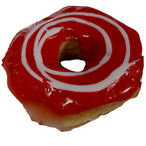 Raised donut, housemade strawberry frosting, vanilla drizzle